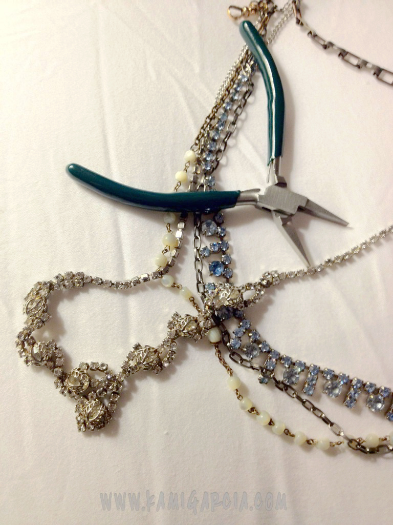 10:40 PM – I hang out with my husband and watch TV while I fix this necklace I love (and broke). I collect vintage necklaces. Paula Montgomery (who made the one in this photo) and Christine Wallace are my favorite designers.