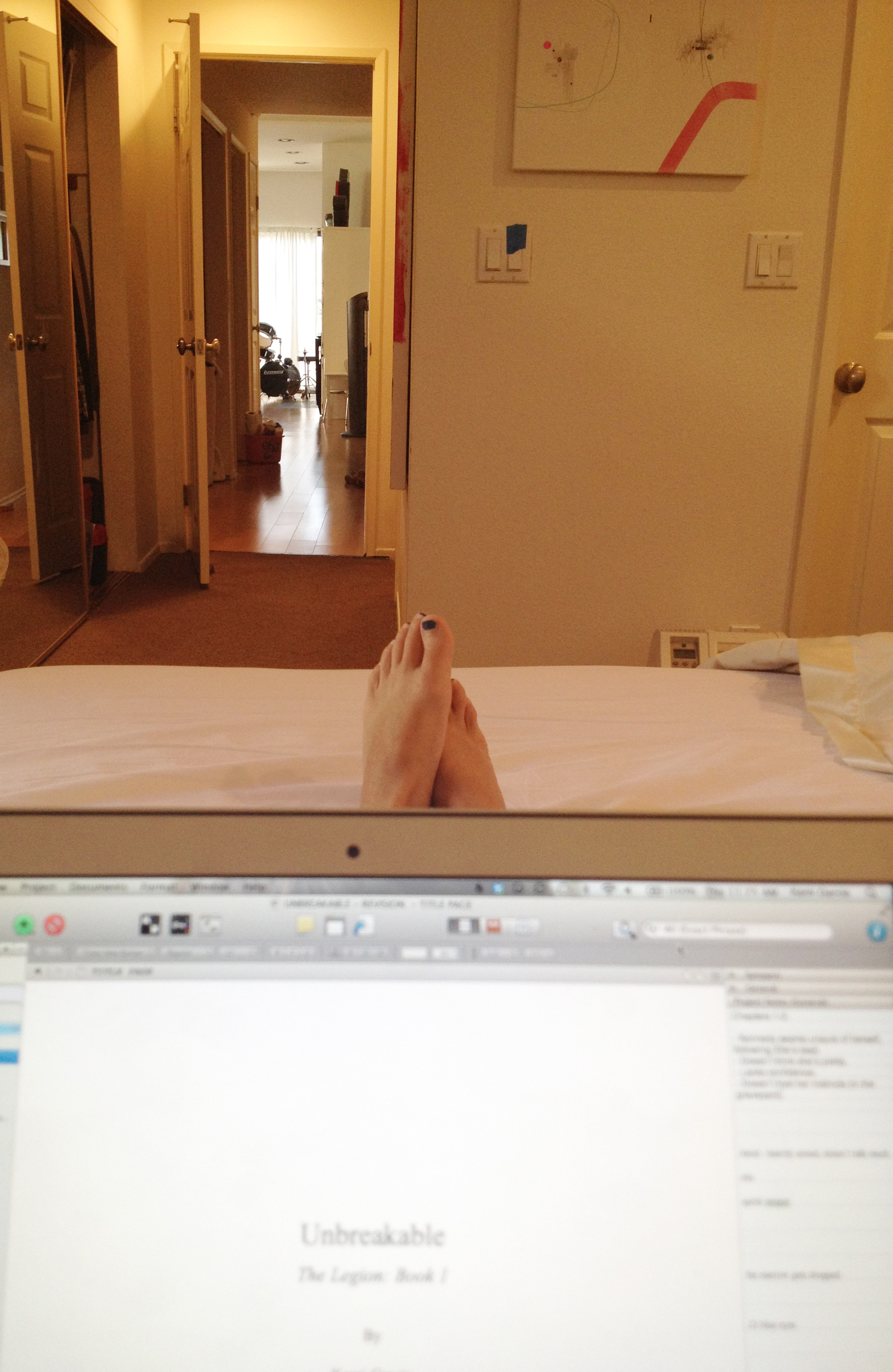 10:10 AM – I open my files in Scrivener to find mt beat sheet for UNBREAKABLE, but I get distracted by Twitter. I don’t want to be anti-social, so I tweet just a little. (This is a huge lie I tell myself daily.)