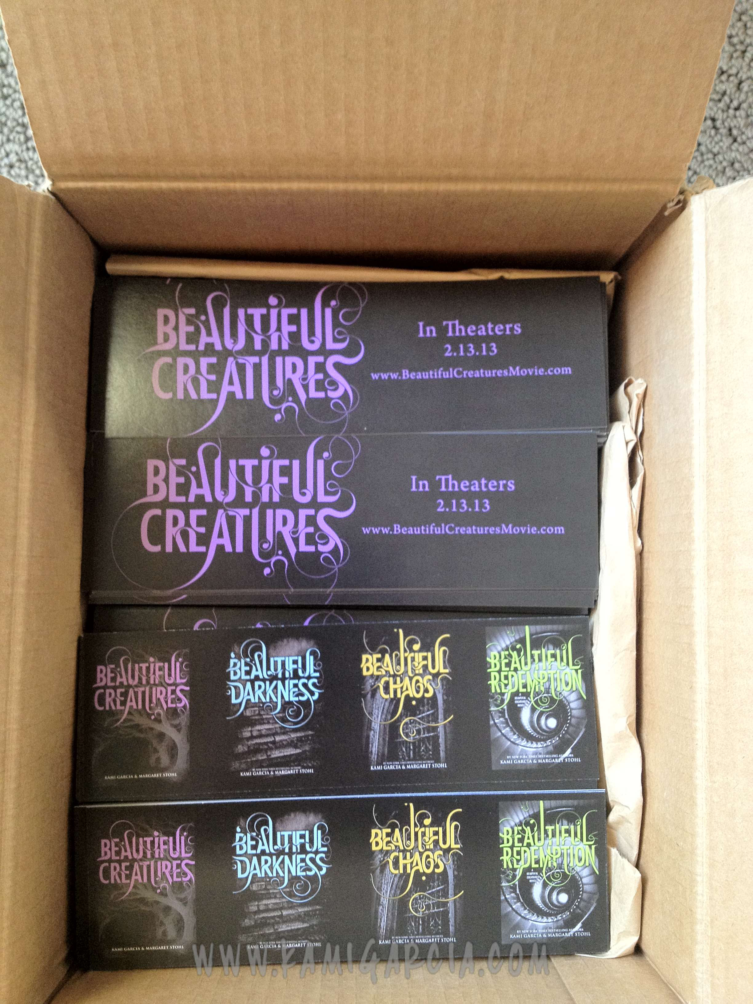 2:15 PM – The new BEAUTIFUL REDEMPTION bookmarks with the Beautiful Creatures Movie info on the back arrive and they look awesome!